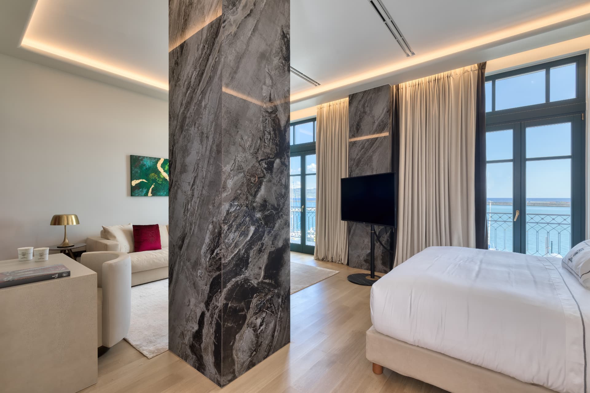 Μία σουίτα λουσμένη στο απαλό φως, με θέα τα κύματα που αγκαλιάζουν την ακτή. Αφήστε τη θάλασσα να σας γαληνέψει.