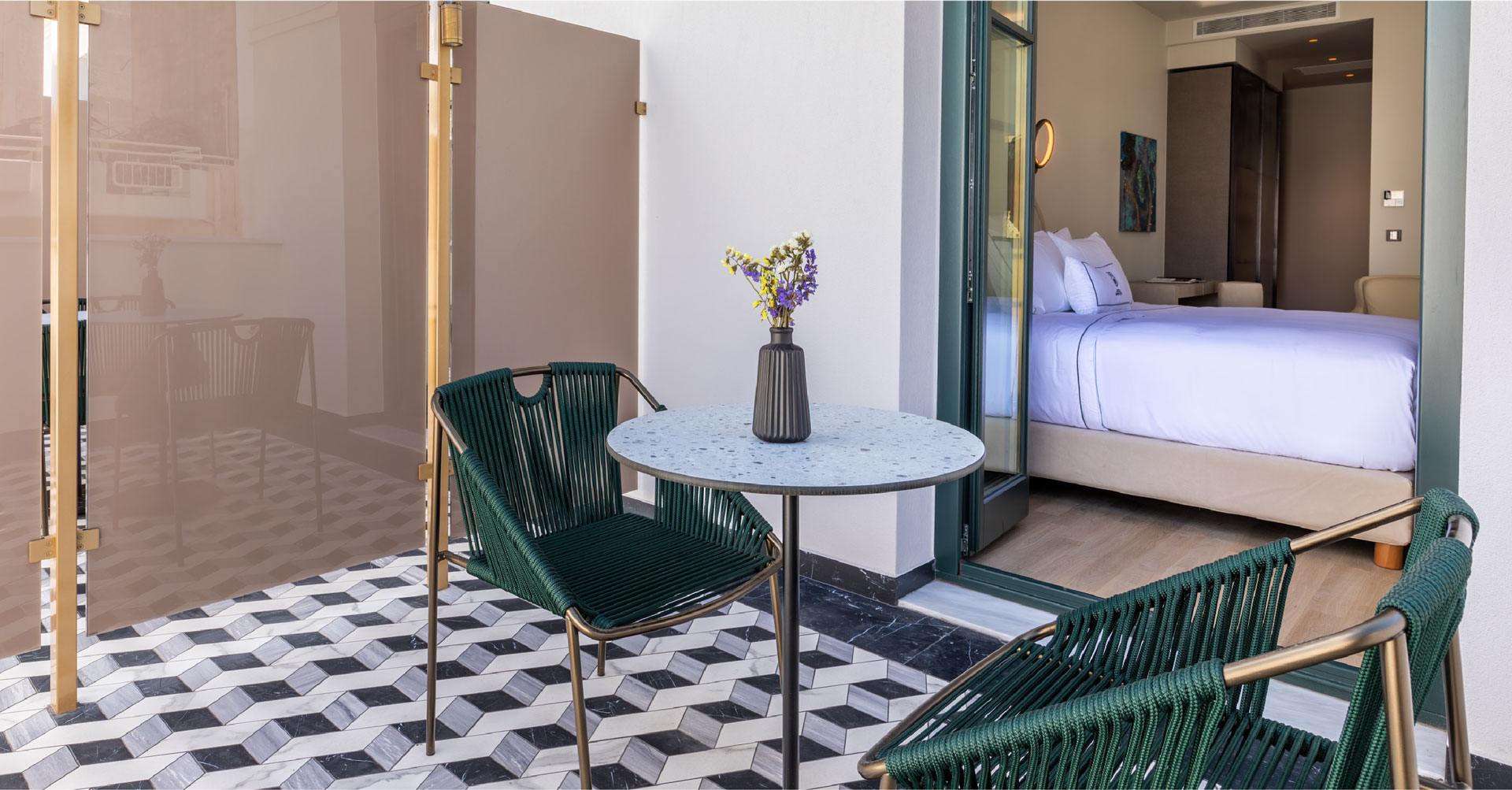Μία σουίτα με θέα στους κοσμοπολίτικους δρόμους της Καλαμάτας, όπου τα ουδέτερα χρώματα και τα φυσικά υλικά αγκαλιάζουν το χώρο.